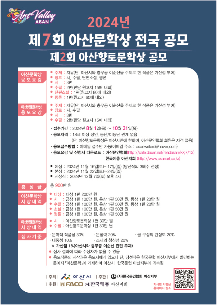 제7회 아산문학상 전국 공모/제2회 아산향토문학상 공모